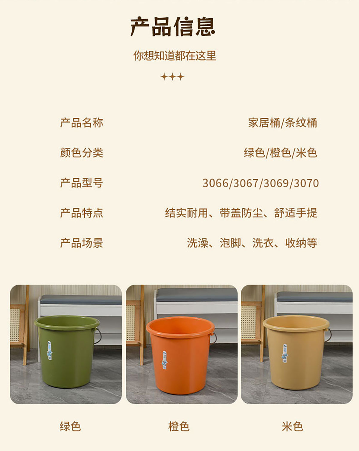 Size: DS-3066(條紋桶):350*300mm DS-3067(條紋桶):350*330mm DS-3069(鐵弓桶):330*320mm DS-3070(鐵弓桶):355*340mm