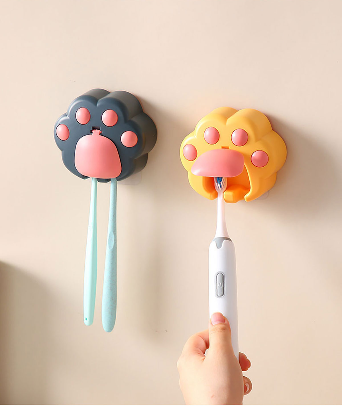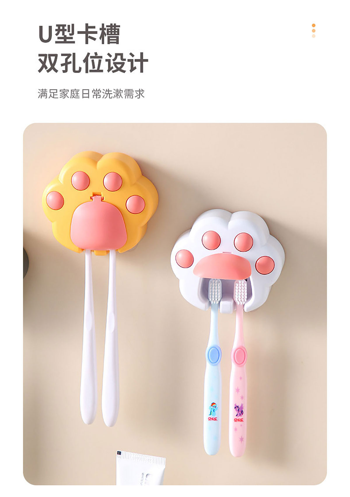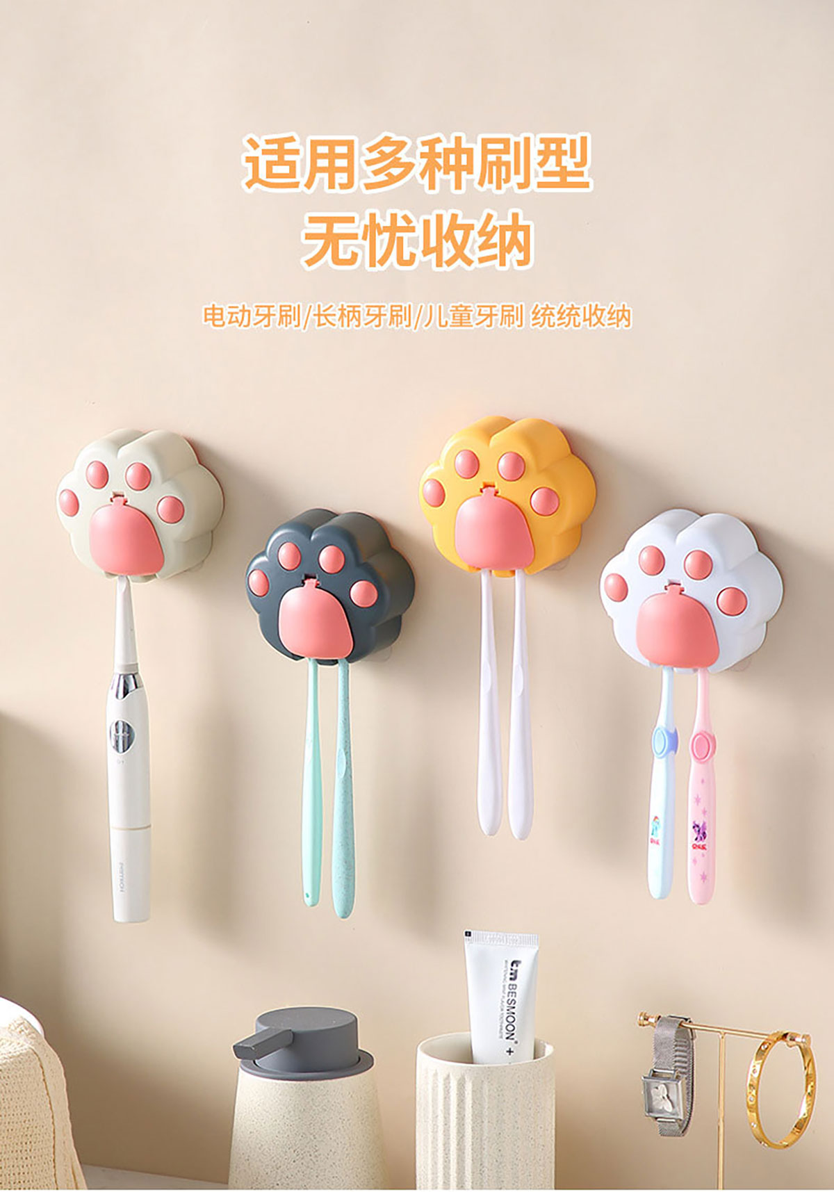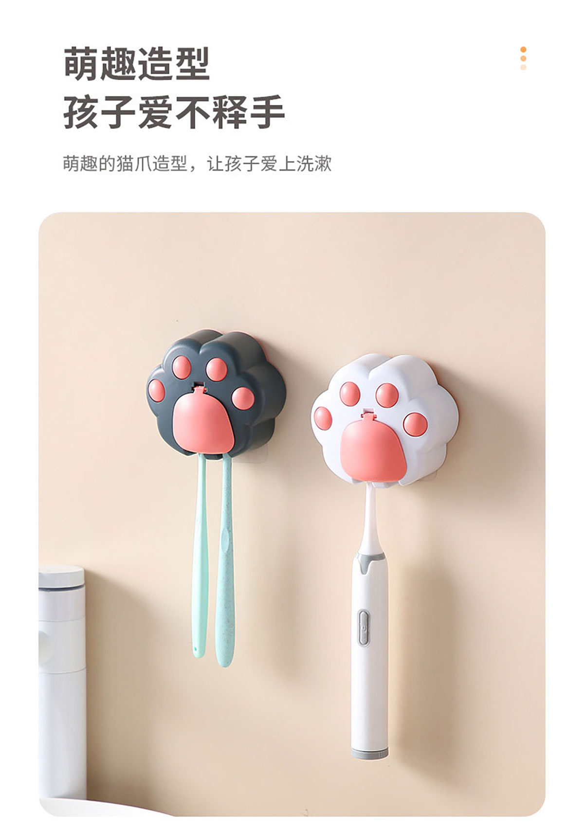 創(chuàng)意免打孔貓爪牙刷架(配無(wú)痕膠)