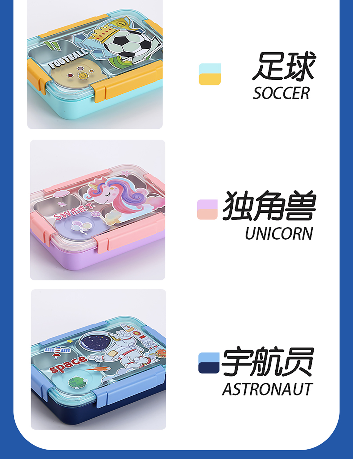 幻彩卡通密封不銹鋼餐盒(4格900ml/4格900ml+碗150ml+不銹鋼筷勺)