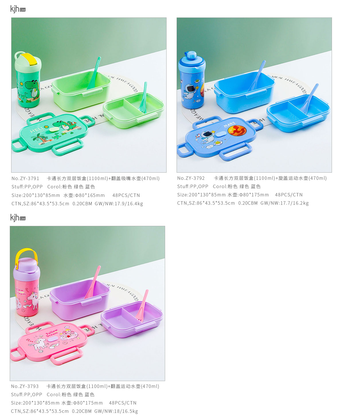 卡通長方單層(含格子)/雙層飯盒+翻蓋吸嘴/旋蓋運動/翻蓋運動水壺