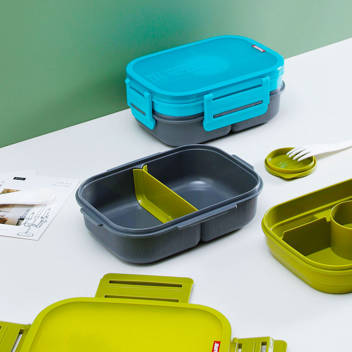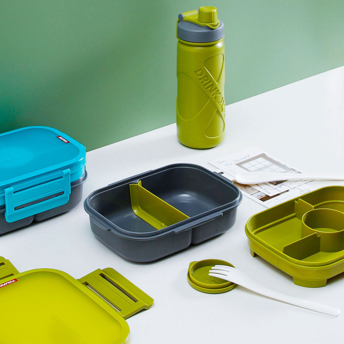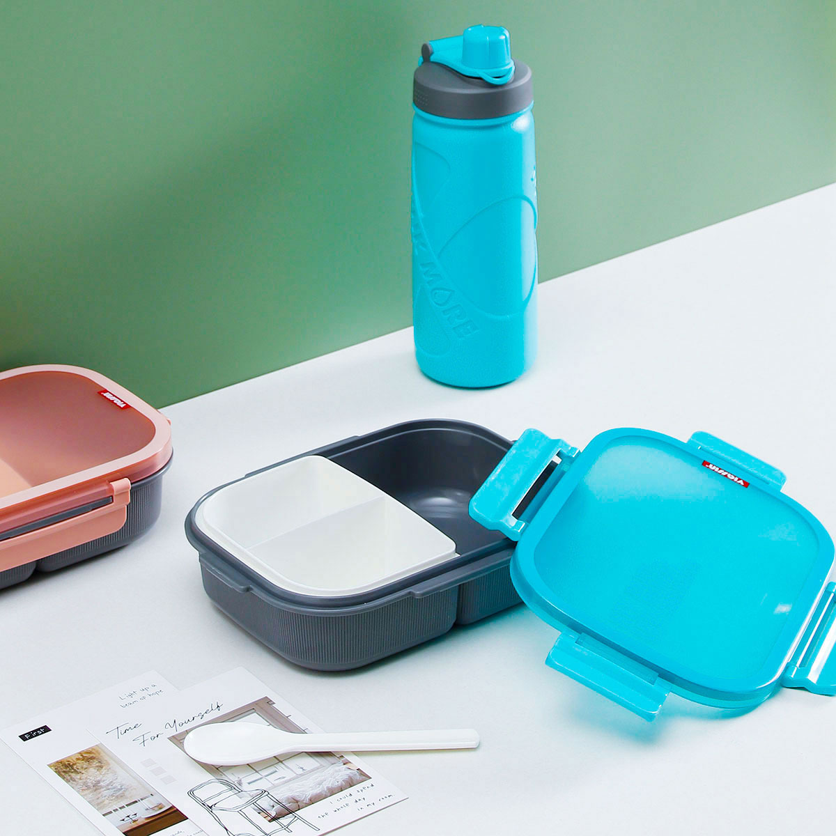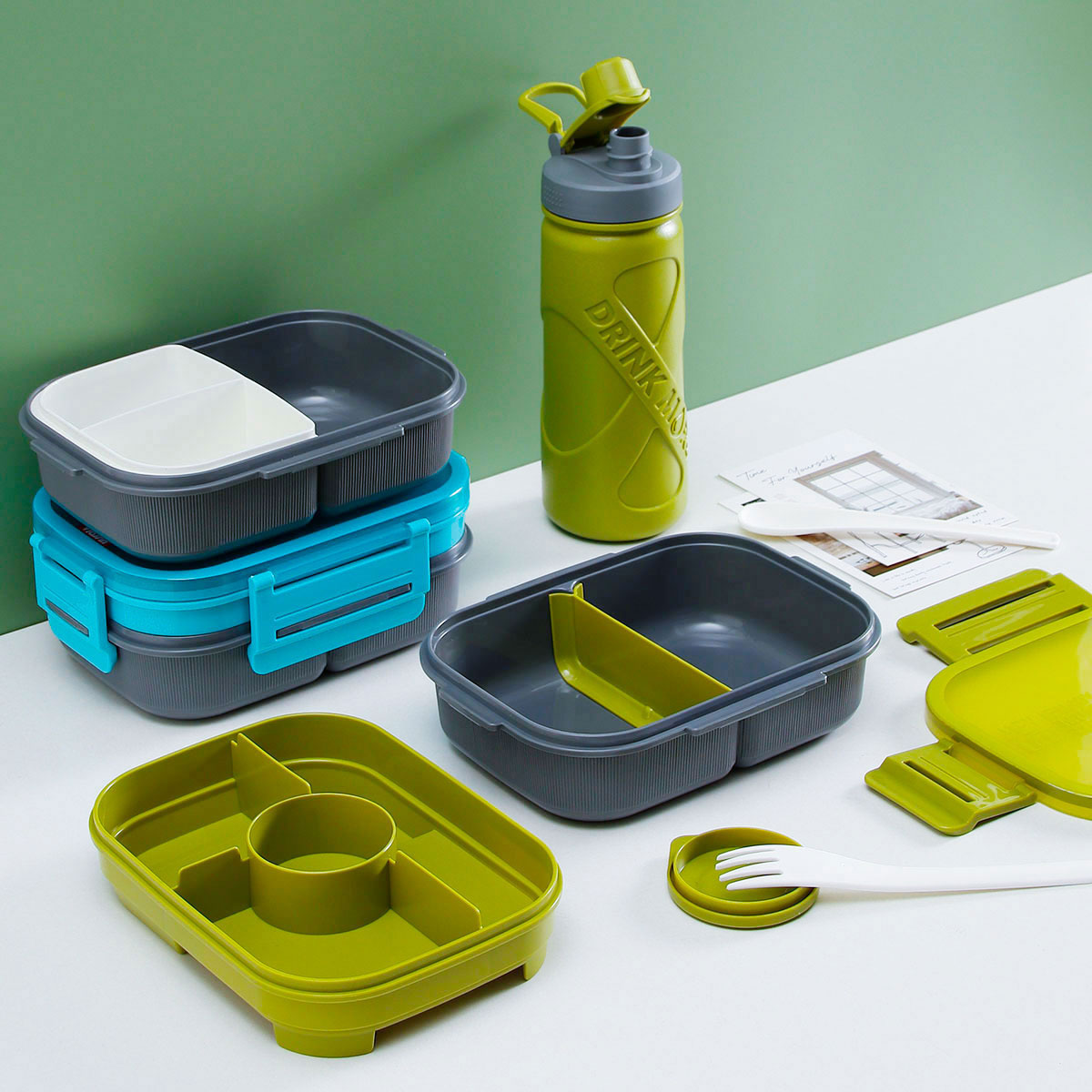 寰彩密封單層3格/雙層6格飯盒(長(zhǎng)方款)+運(yùn)動(dòng)水壺套裝/單個(gè)