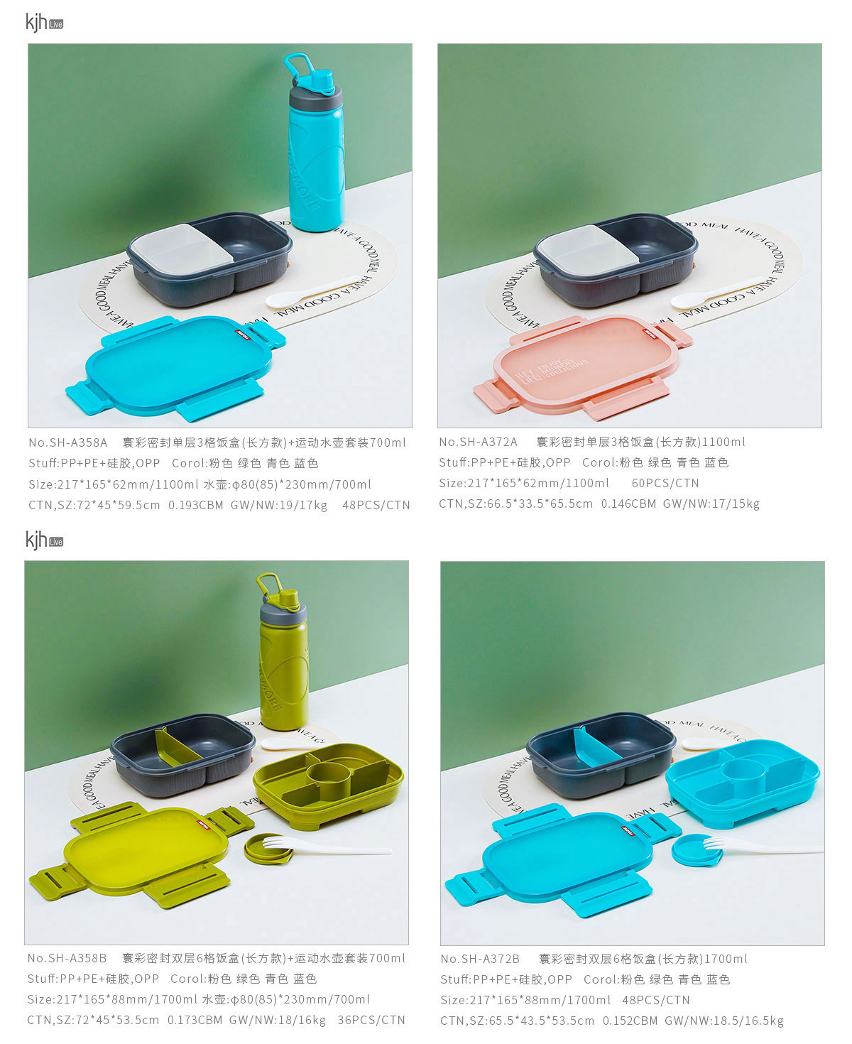 Size: SH-A358A(單層套裝):217*165*62mm/1100ml 水壺:φ80(85)*230mm/700ml