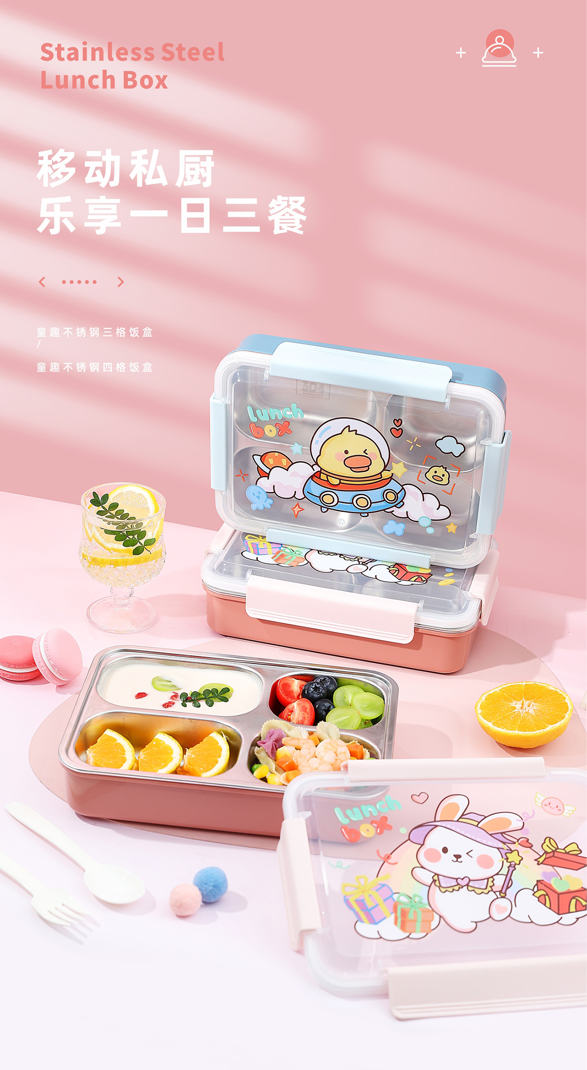 不銹鋼三格/四格飯盒(小號(hào)/中號(hào))