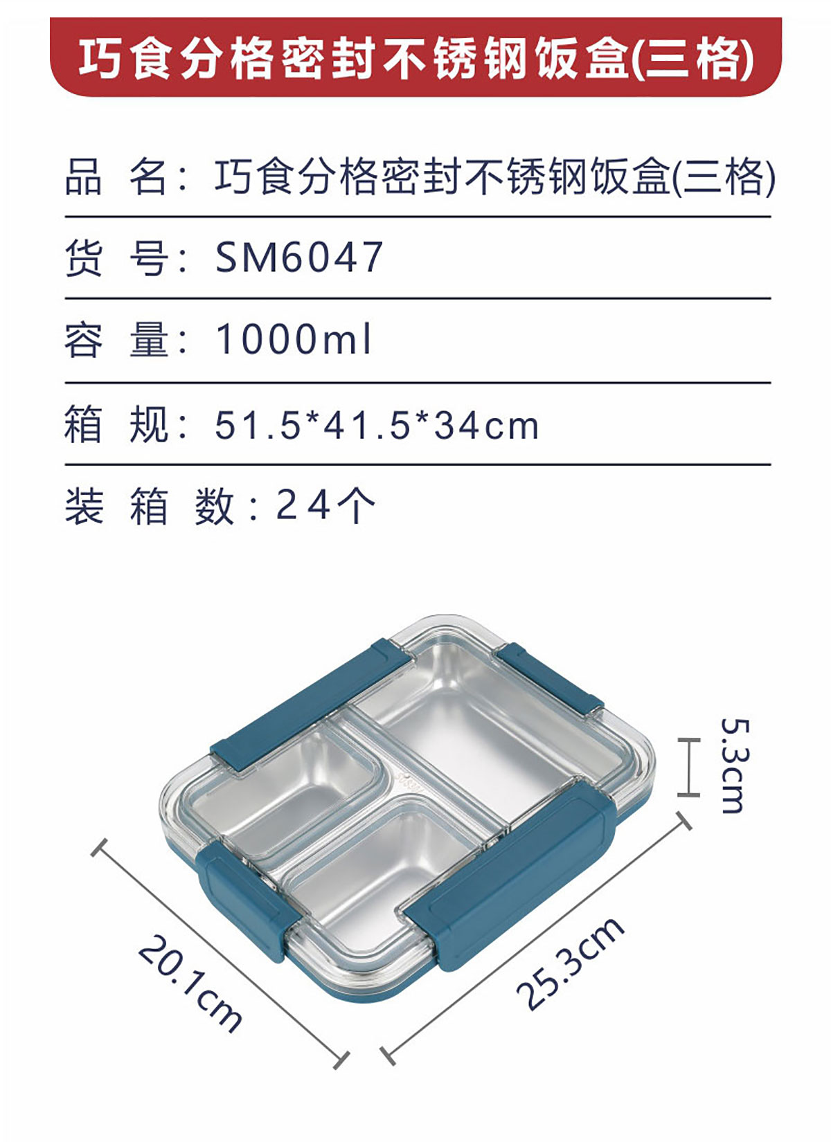 Size: SM-6047(三格):201*53*253mm/1L