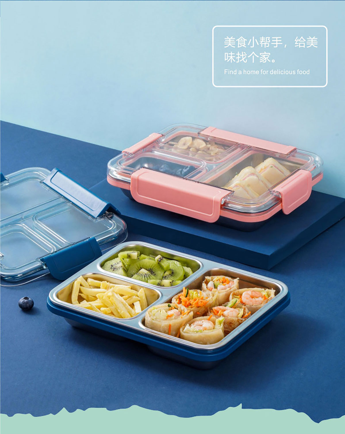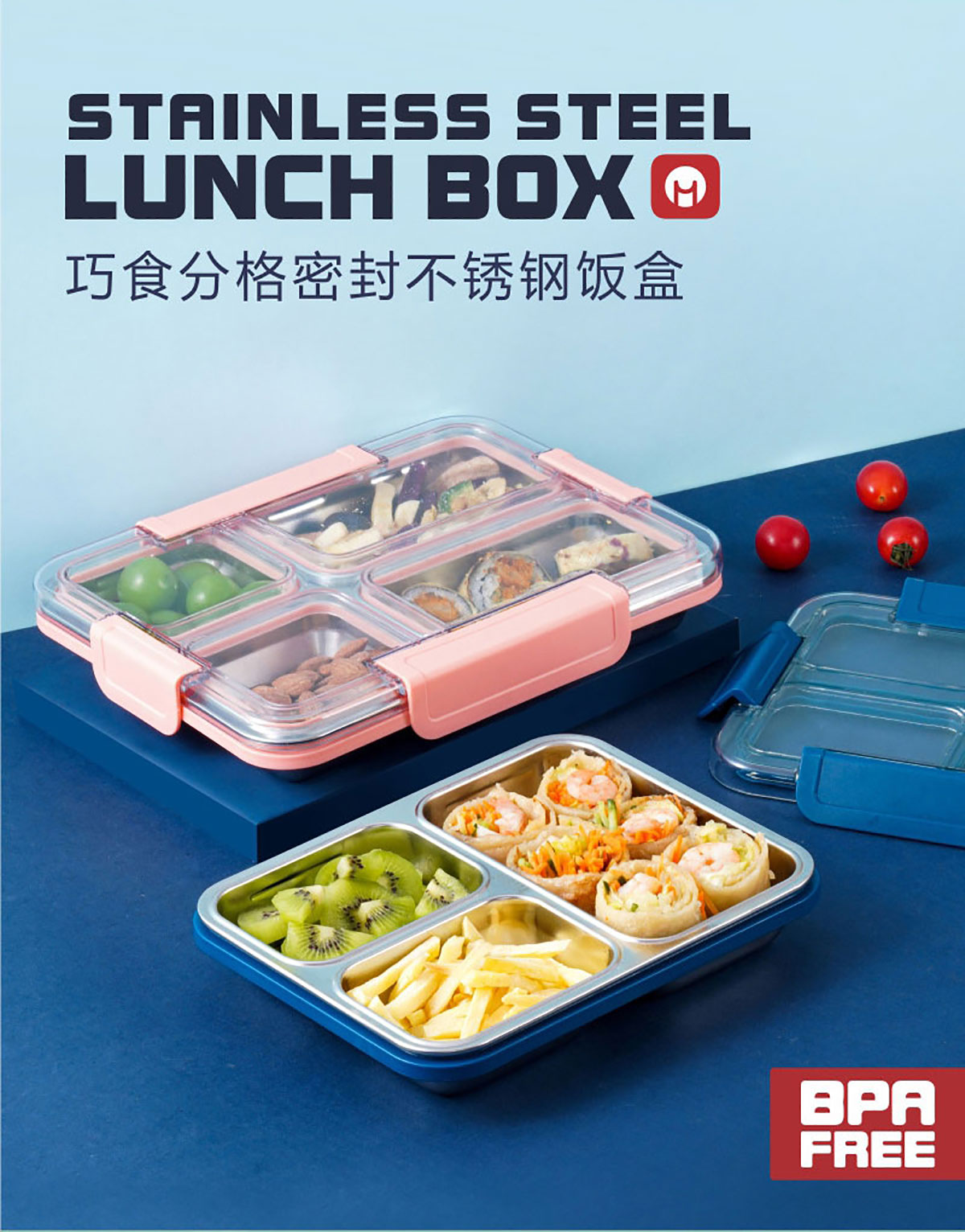 巧食分格密封不銹鋼三格/四格飯盒