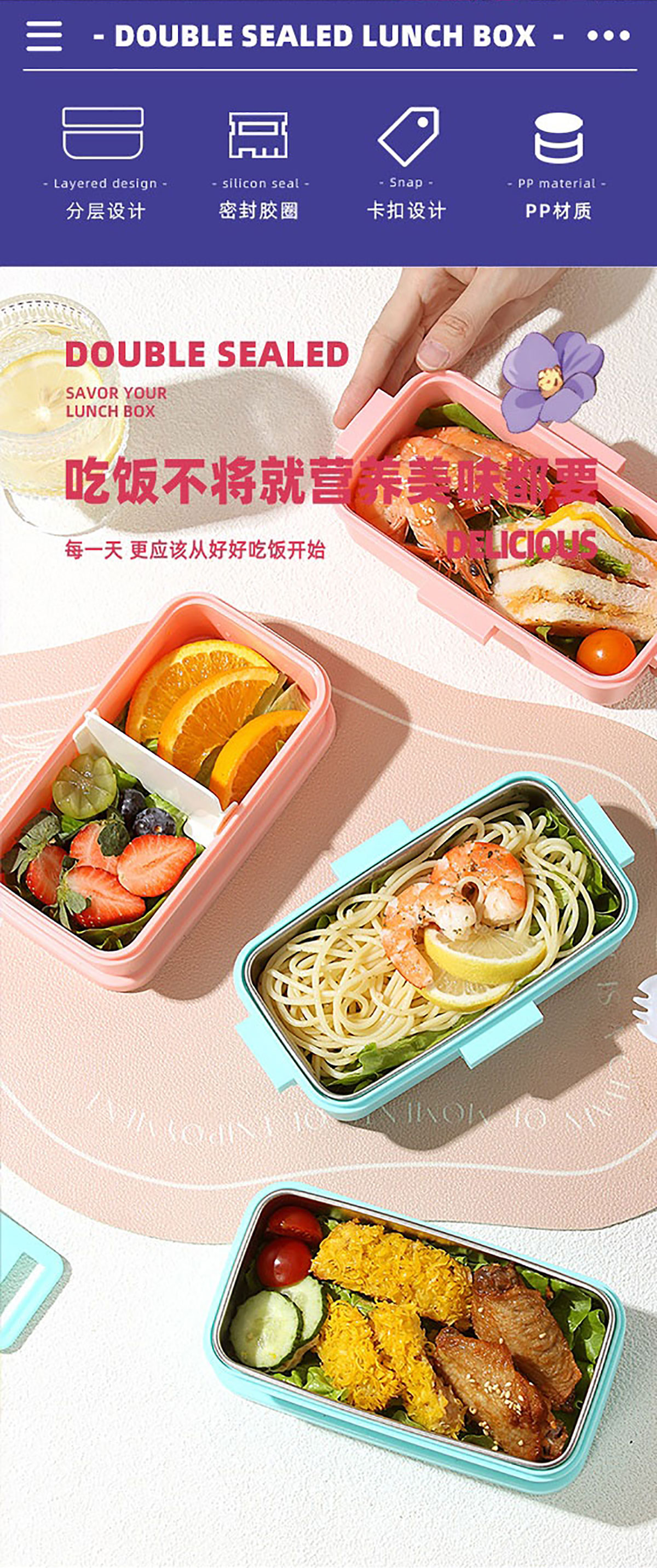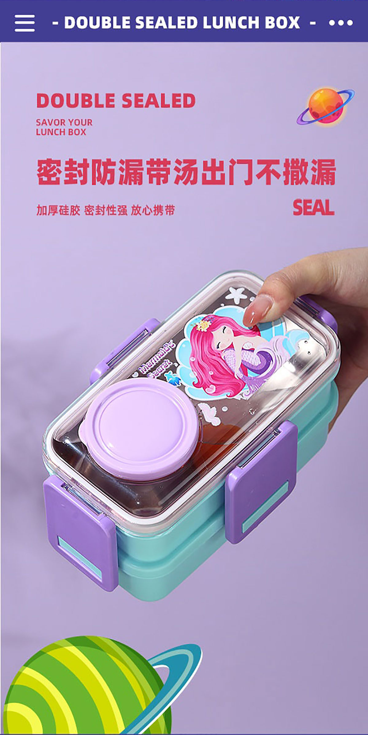 彩光卡通雙層餐盒(500mlx2+外置醬料杯80ml)