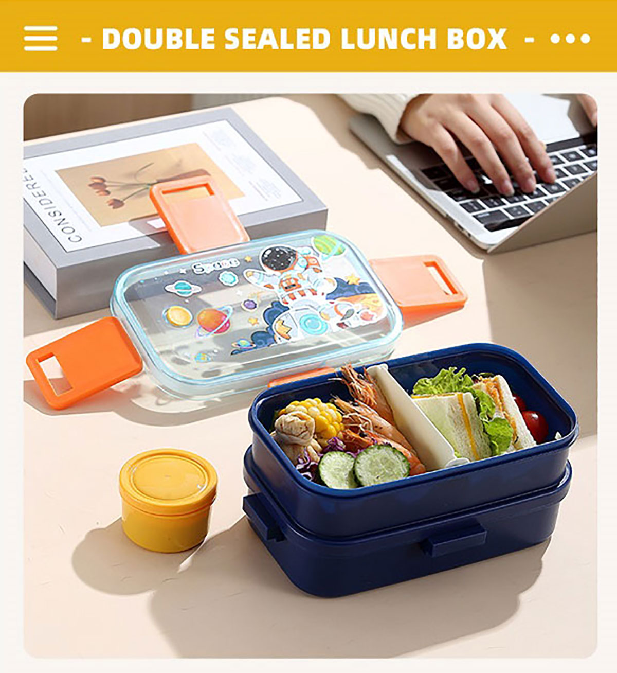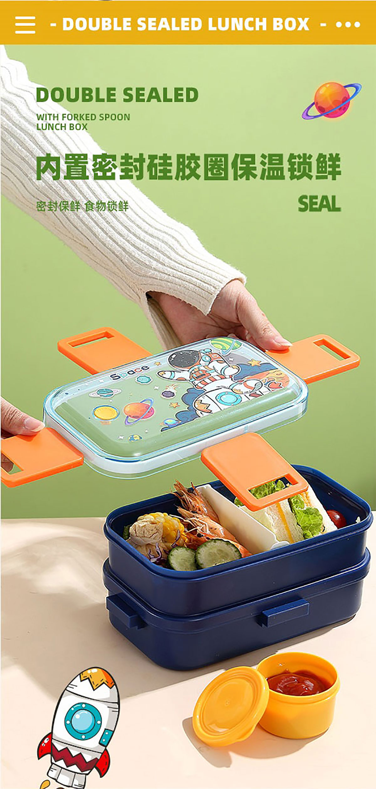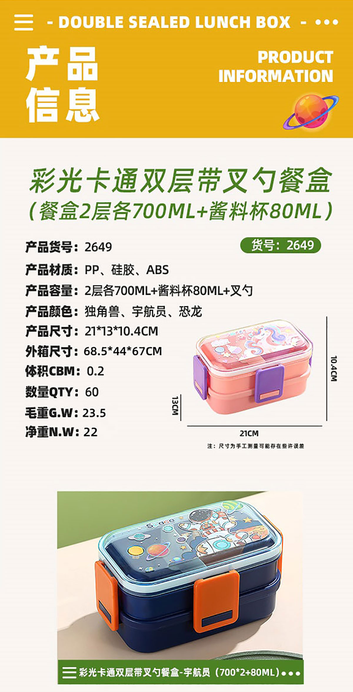 彩光卡通雙層餐盒(700mlx2+醬料杯80ml+pp勺)