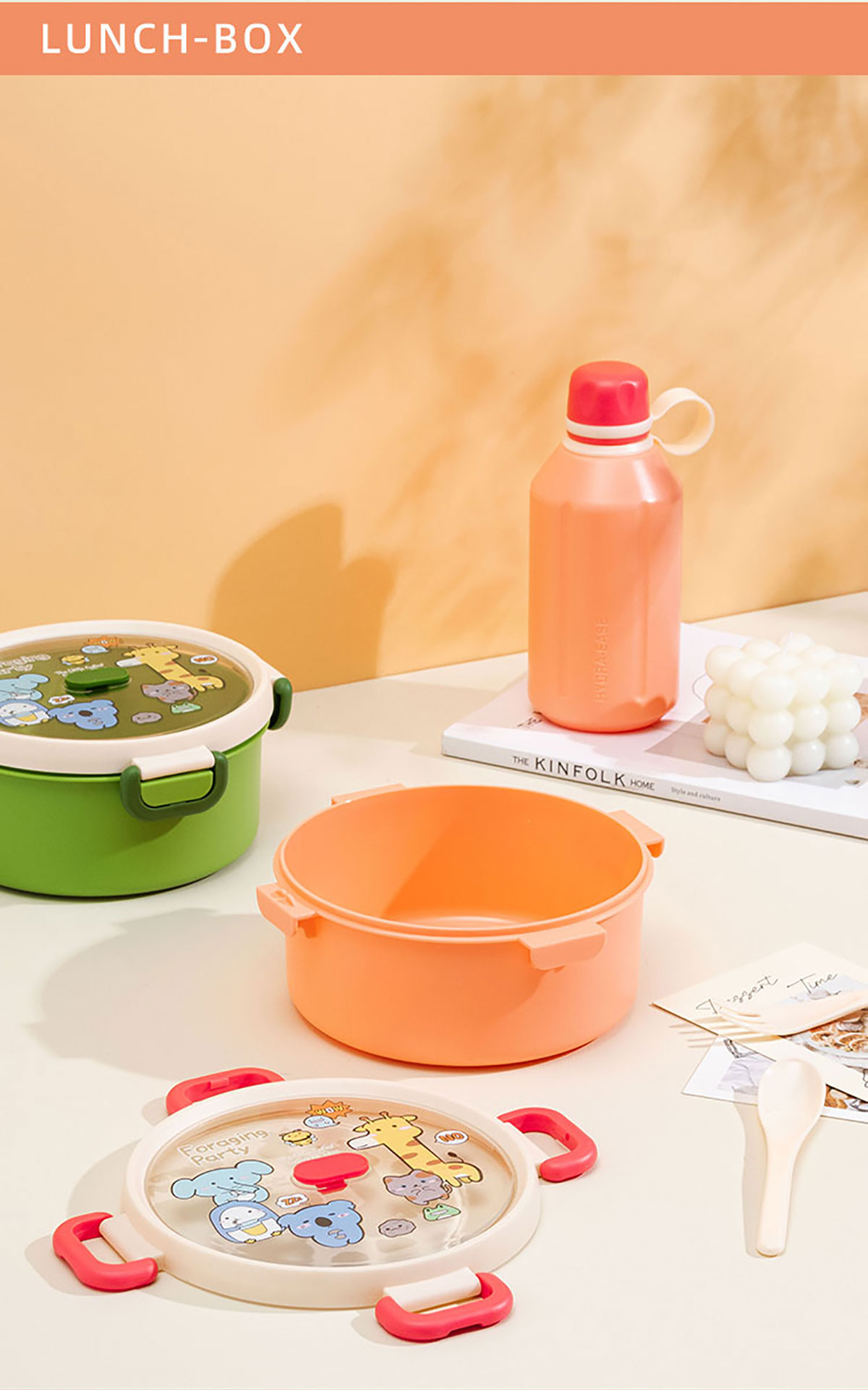 尚趣圓形單層飯盒(1000ml)/+圓形/方形運(yùn)動(dòng)水壺(500ml)