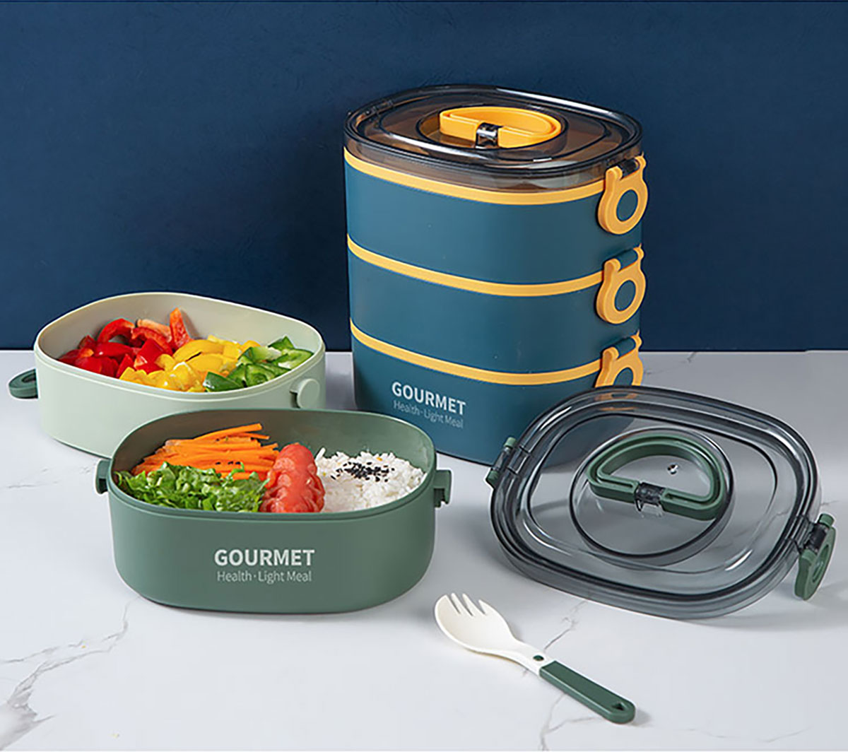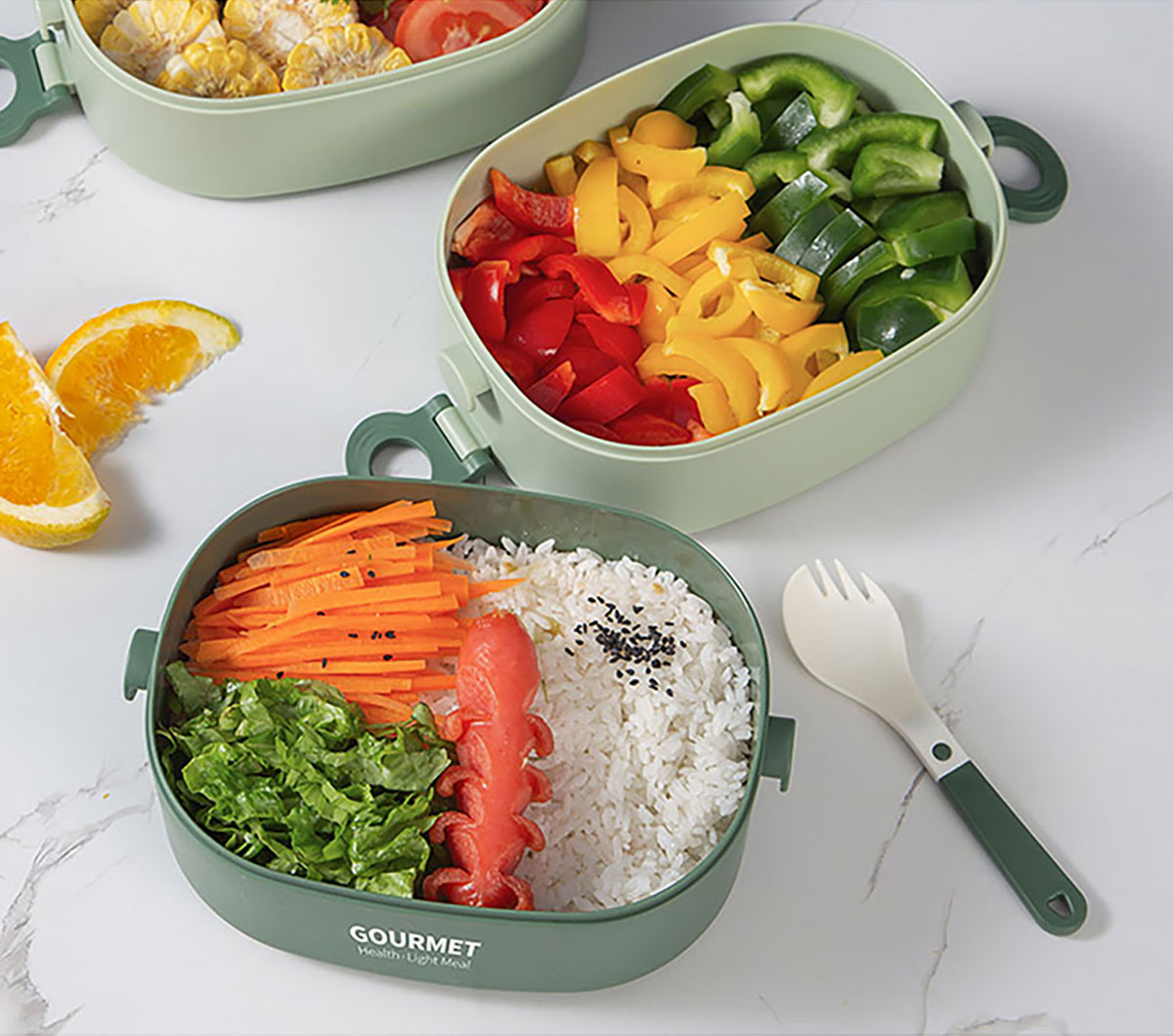 味鮮橢圓單層/雙層/三層塑料飯盒